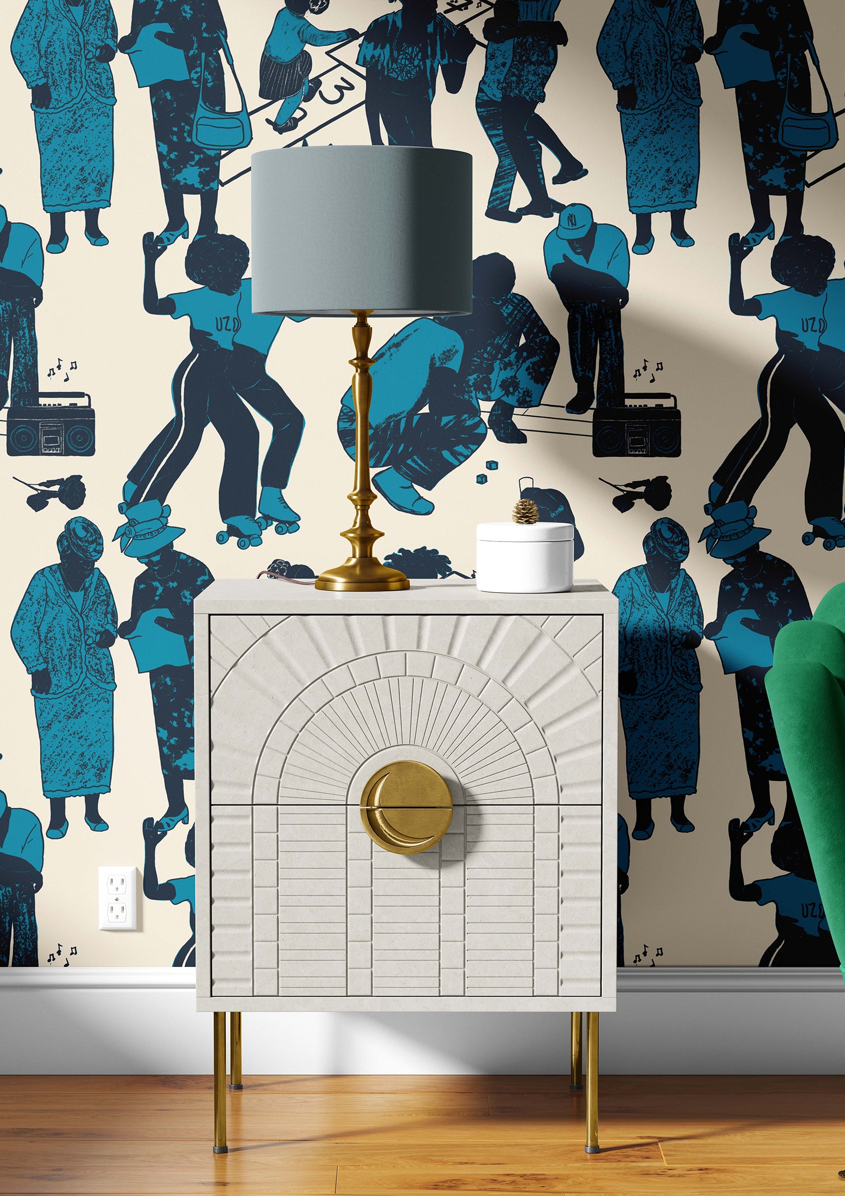 Jamboree is part of the Uzo Njoku collection. Uzo Njoku is a versatile visual artist well known for her mesmerizing motifs used in her pattern making. Her colorful paintings which majorly depict melanin figures in different forms portray them in various contexts of beauty all while incorporating her beautiful patterns in the paintings to create contrast and depth.